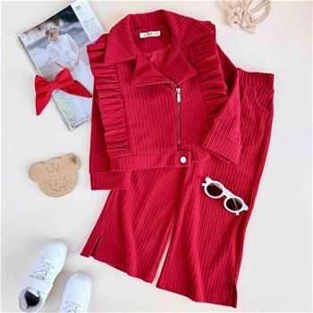 دوتیکه کت شلوار کبریتی قرمز 4 تا 11 سال کارنبیبی کد 10047