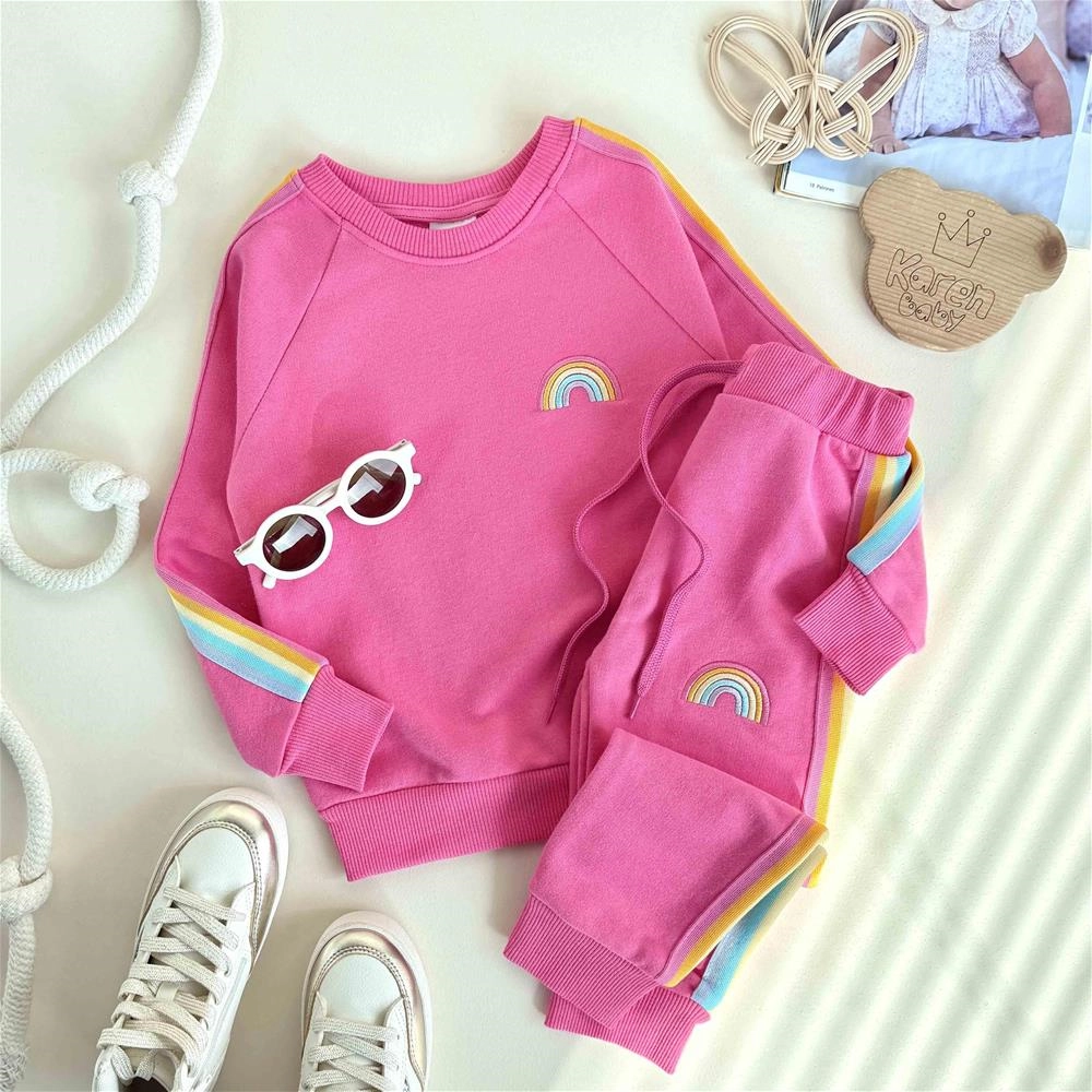 دوتیکه بلوز و شلوار دورس طرح رنگین کمان 4 سال تا 10 سال کد 10056