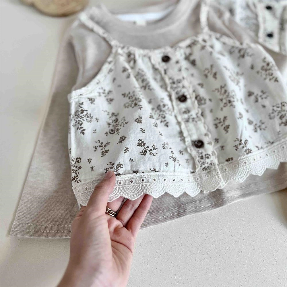 دوتیکه بلوز تاپ طرح گل گلی 2 سال تا 6 سال کد 10216