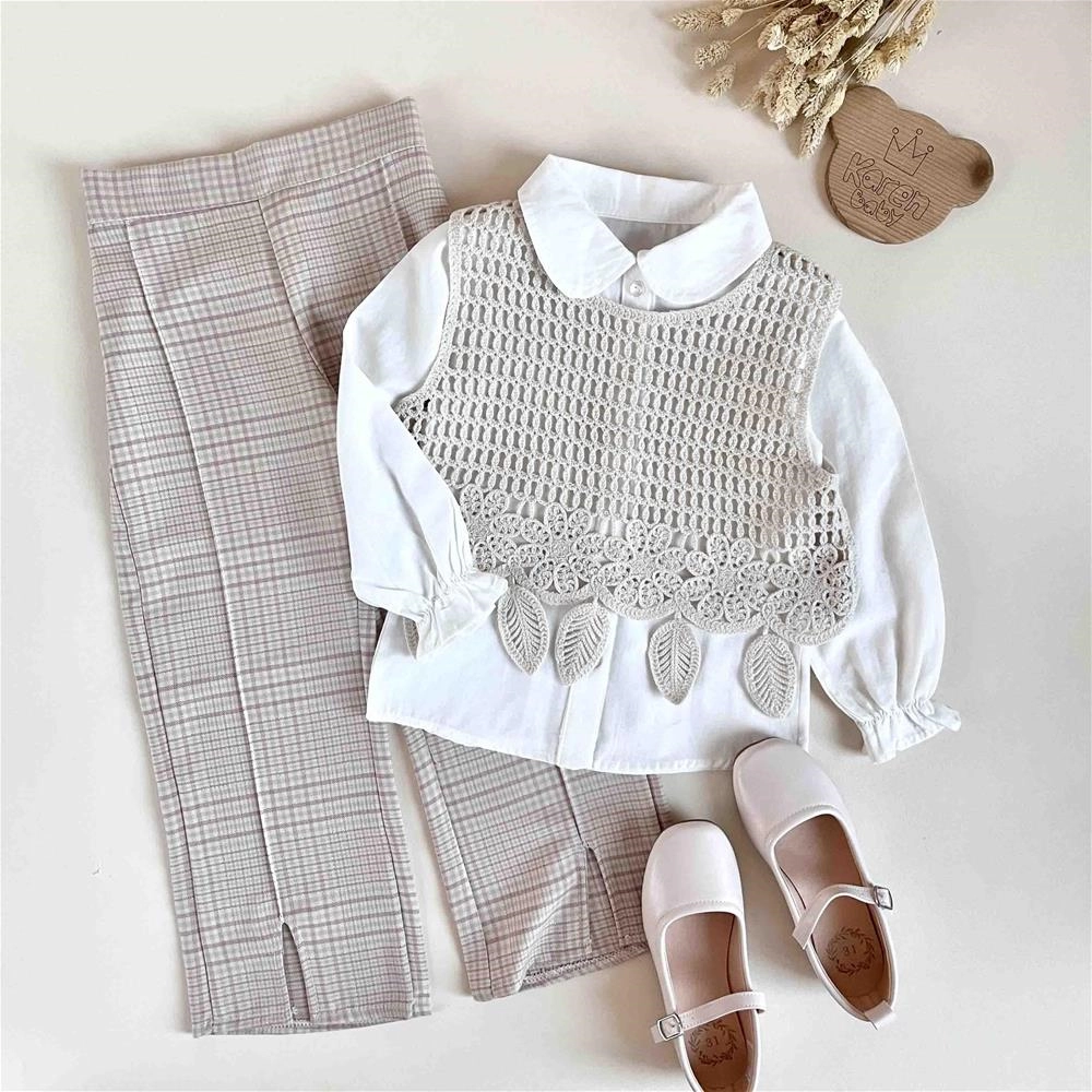 دو تیکه بلوز و جلیقه قلاب بافی مجلسی 6 سال تا 9 سال کد 10238