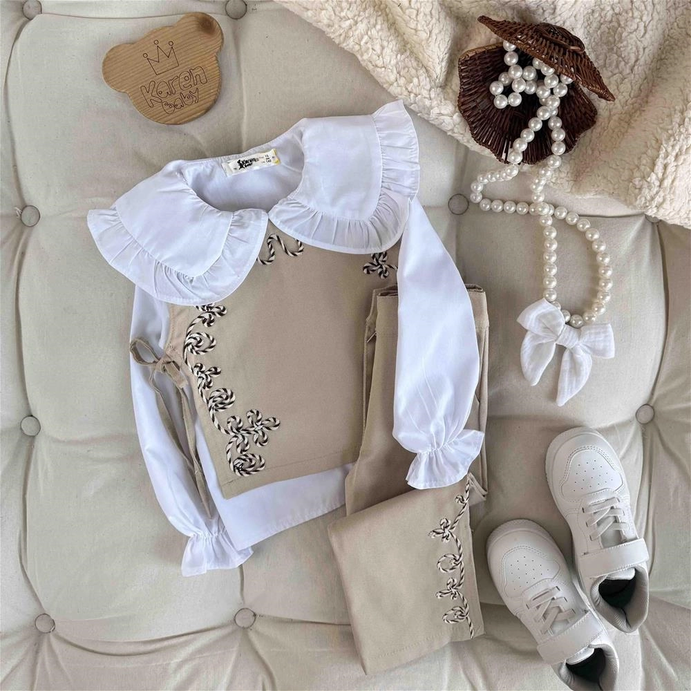 سه تیکه کتان وست گلدوزی کرم 3 سال تا 10 سال کد 211607