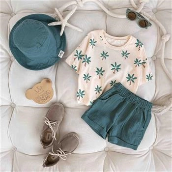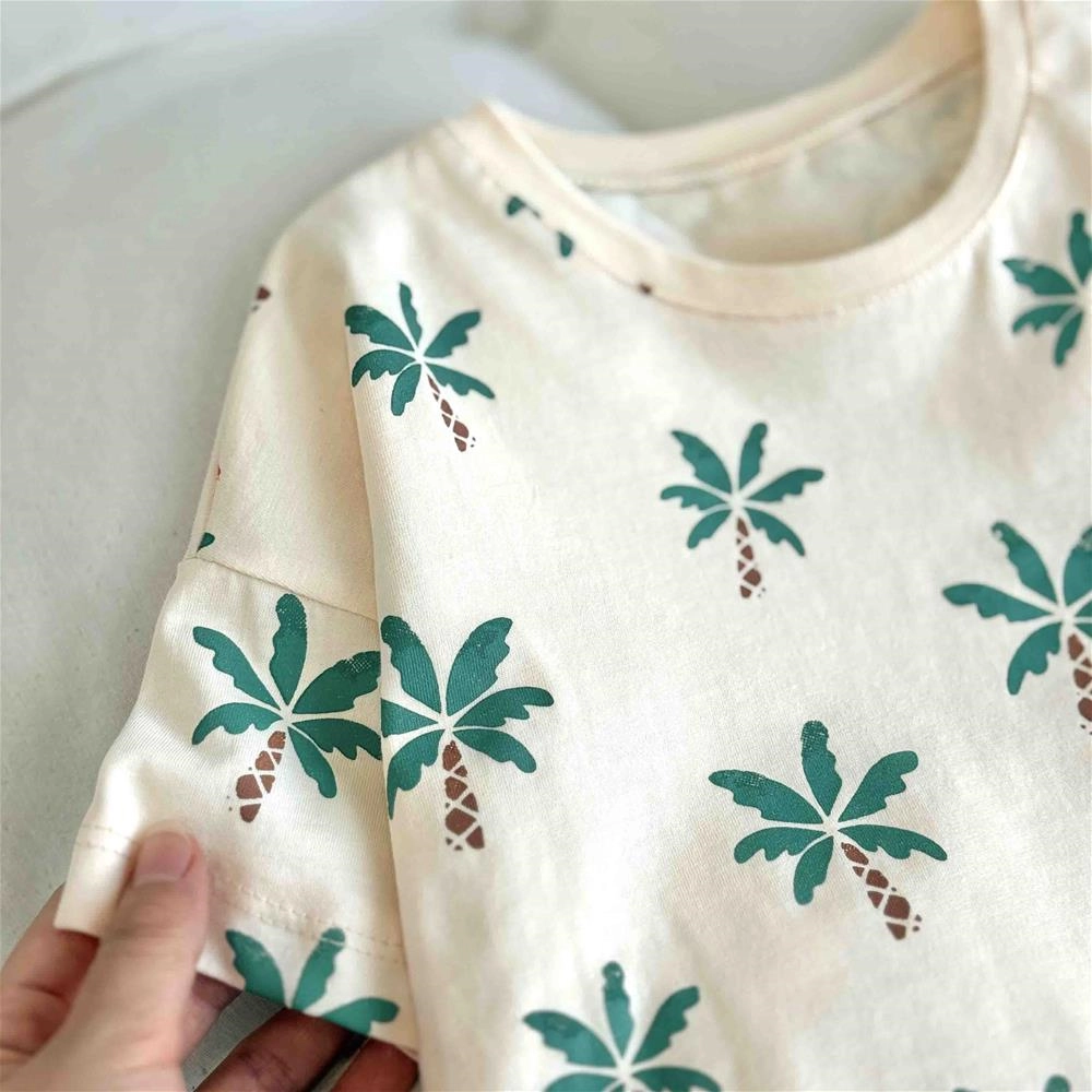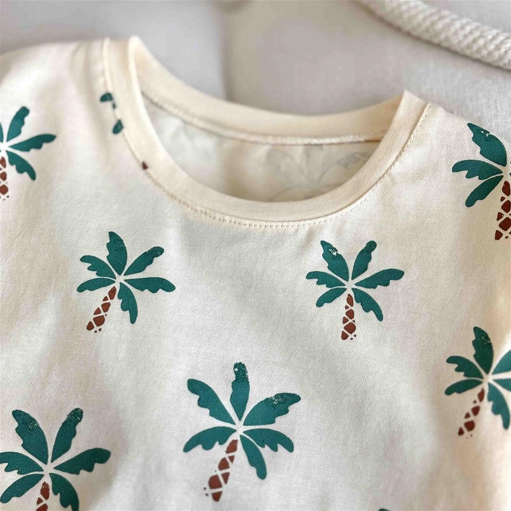 سه تیکه تیشرت شلوارک بچگانه کلاهدار طرح نخل 1 سال تا 3 سال کد 9637 (221151)