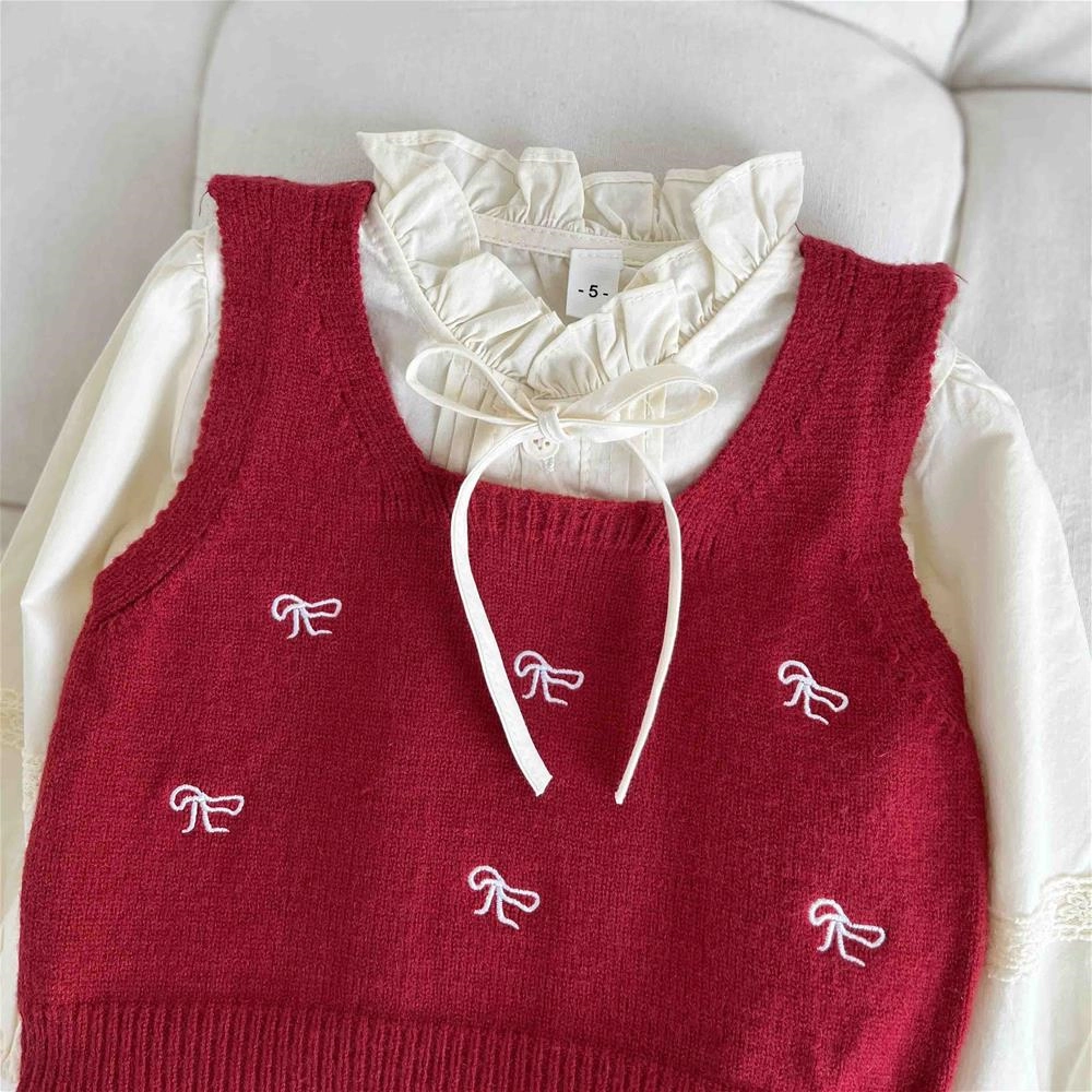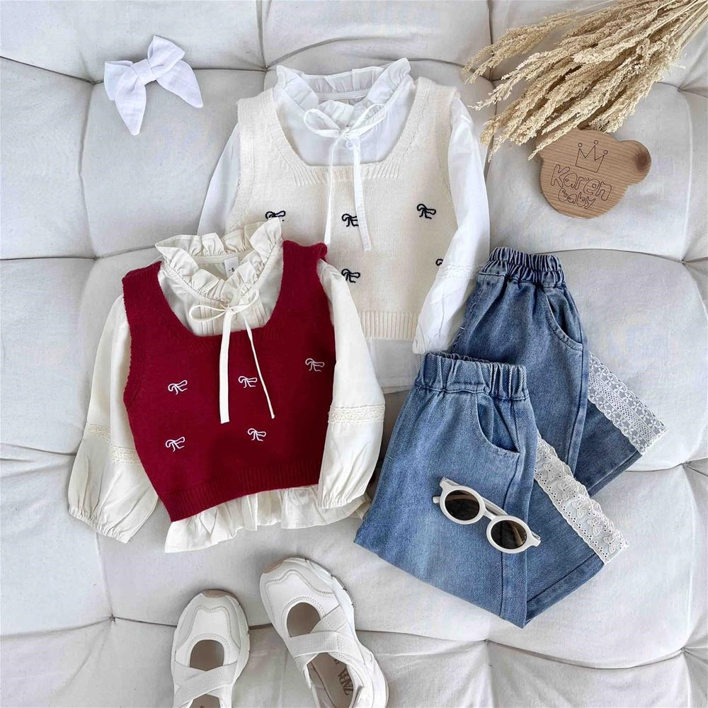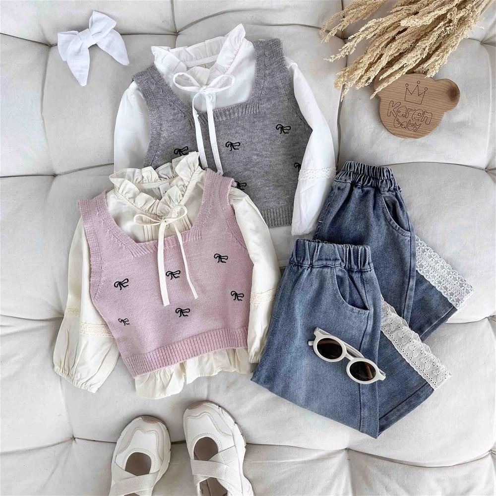 سه تیکه بافت پاپیون شلوار جین 2 تا 6 سال کد 9774