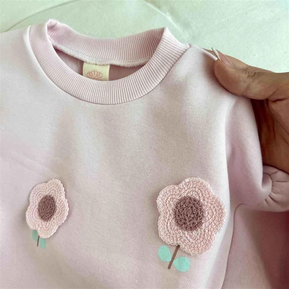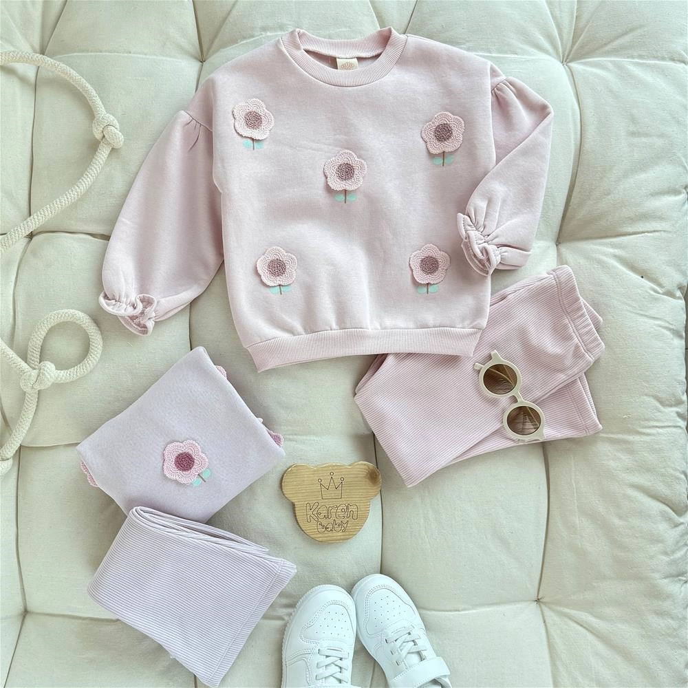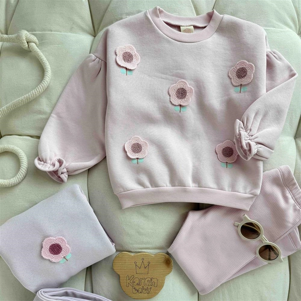 دوتیکه بلوز و شلوار بچگانه طرح گل گلی داخل کرکدار 4 سال تا 7 سال کد 9877