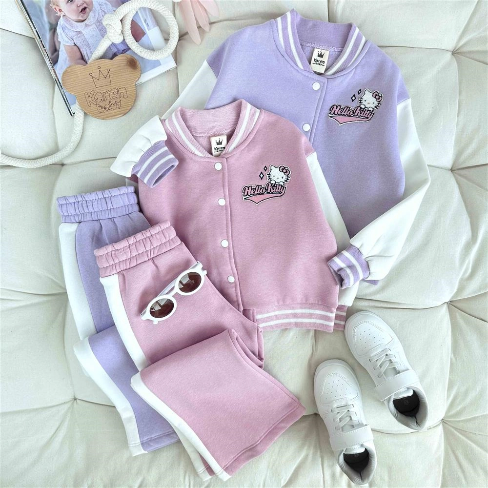 دوتیکه سویشرت شلوار تو کرکی طرح کیتی 5 سال تا 8 سال کد 9878