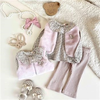 سه تیکه بلوز و شلوار جلیقه دار طرح پروانه 1 سال تا 4 سال کد 9881