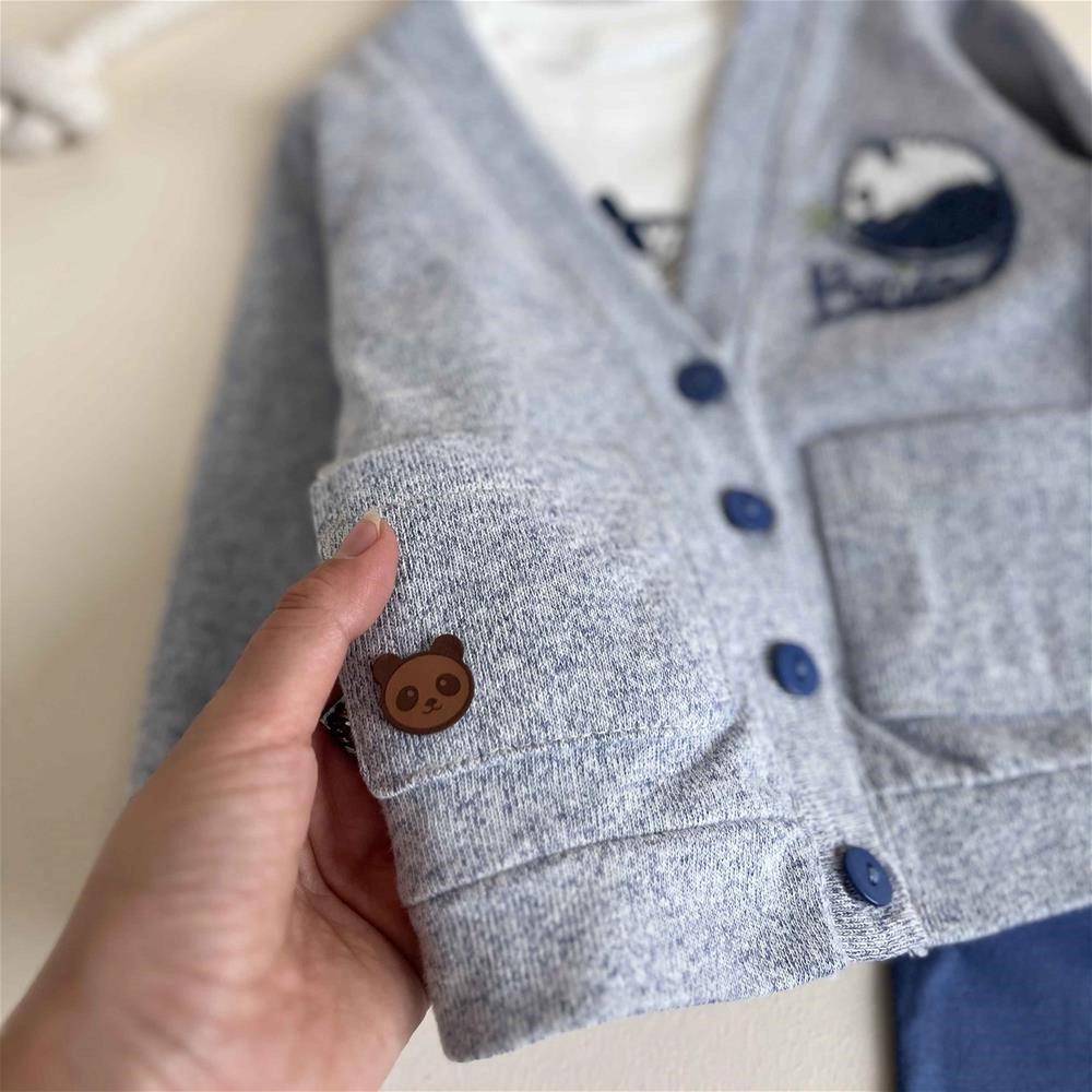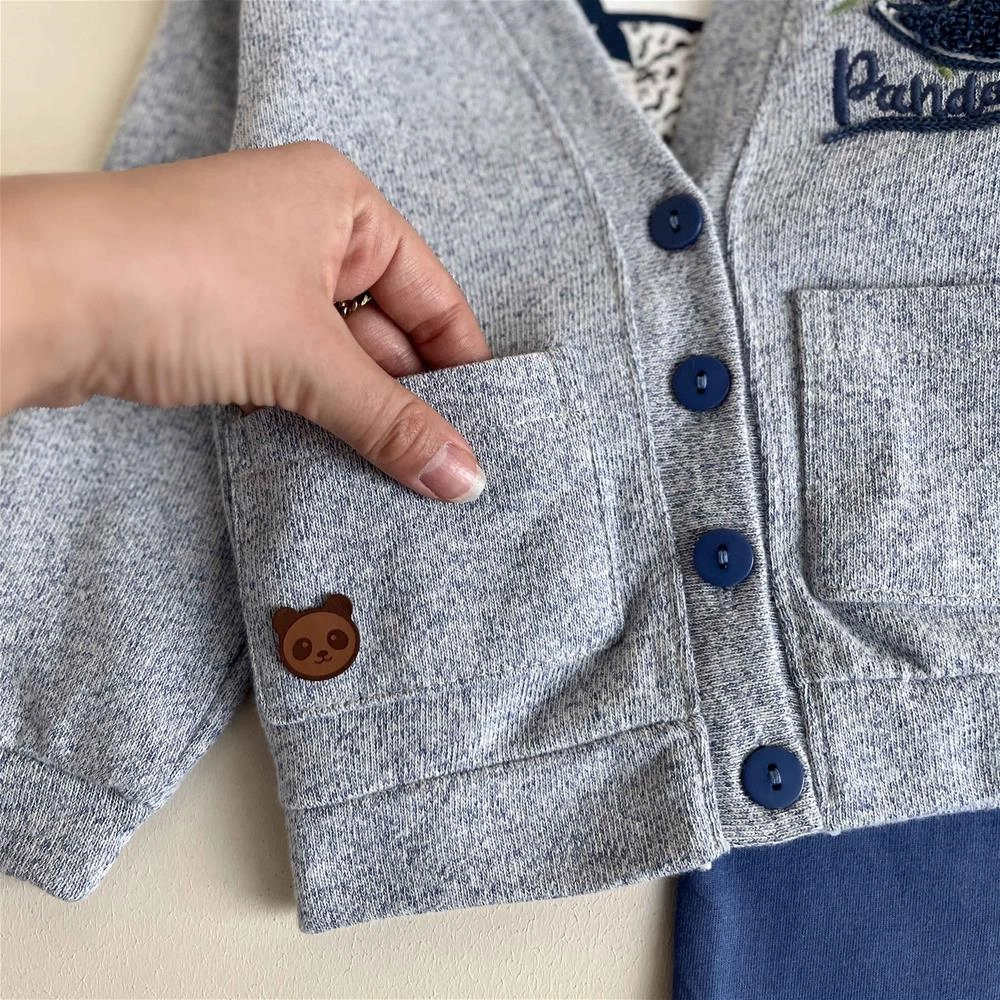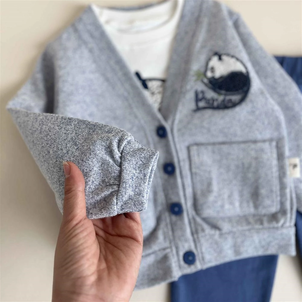 سه تیکه بلوز و شلوار و ژاکت طرح پاندا 9 ماه تا 24 ماه کد 9897