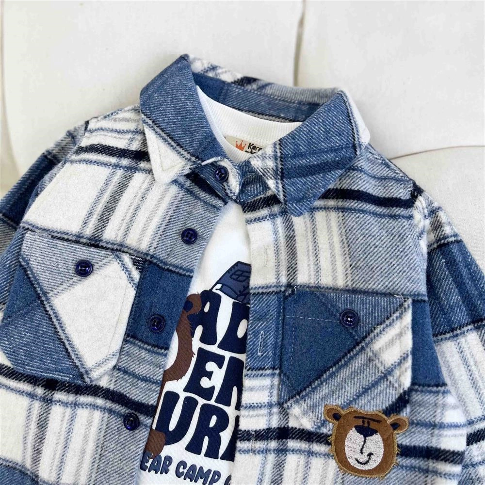 دوتیکه بلوز تدی و پیراهن چهارخانه 2 سال تا 9 سال کد 9953