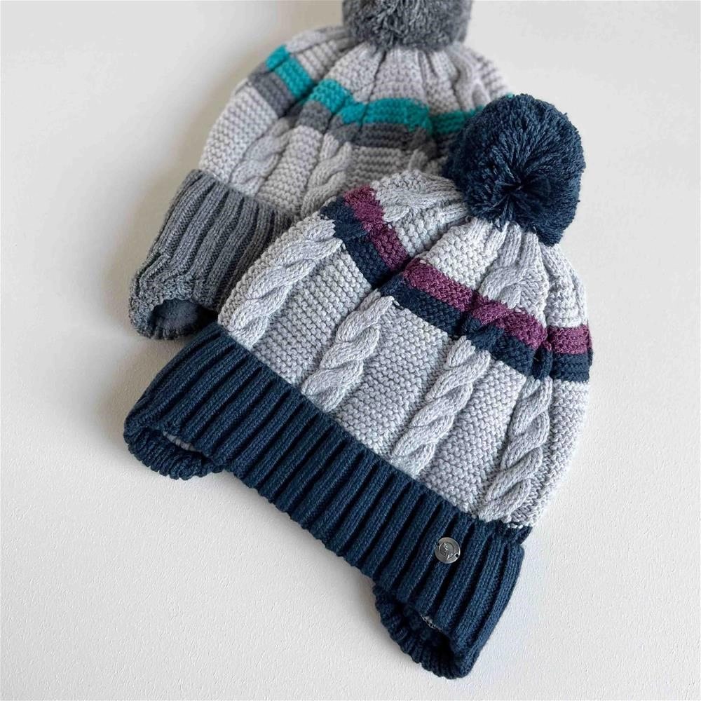 کلاه تک بافت داخل پلار طرح دوخط 2 تا بزرگسال کد 9995
